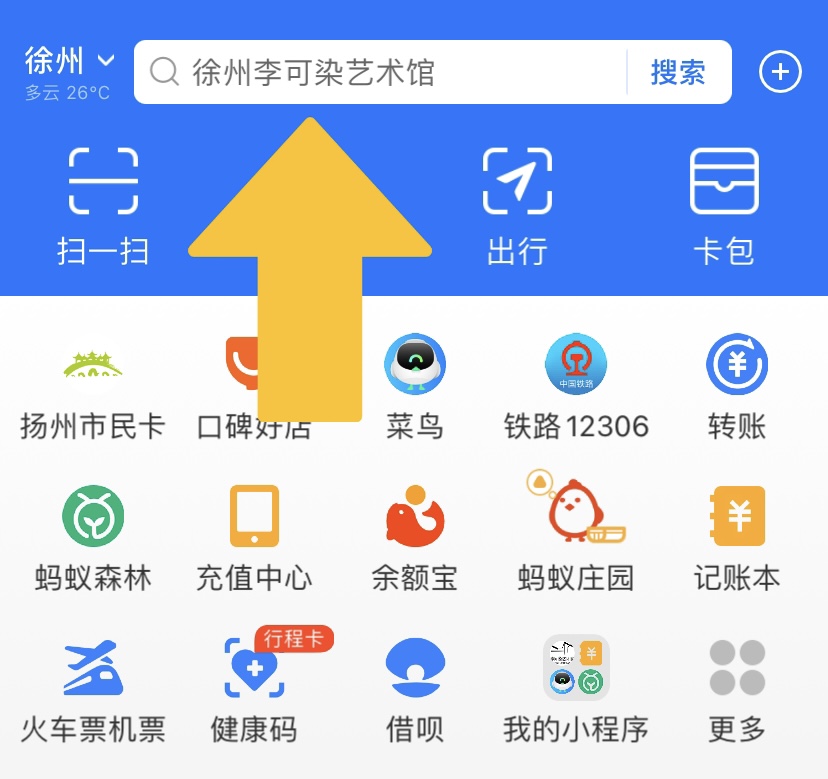 第一步:打开支付宝,输入“徐州李可染艺术馆”