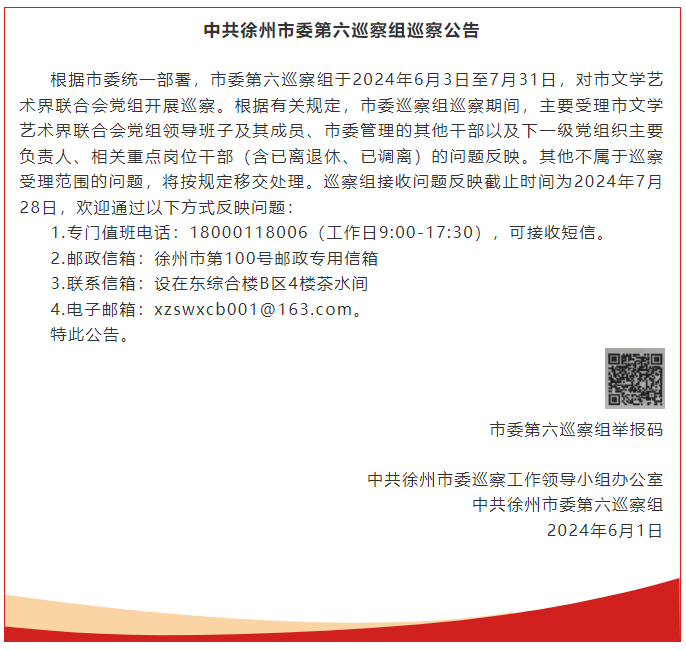 中共徐州市委第六巡察组巡察公告