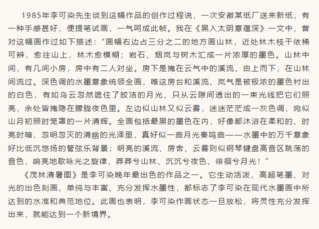 第四则、气氛中国水墨画从来讲究气氛。「山中有龙蛇」,就是说的贯气。又说「苍茫之气」、「含烟带雨」、「挥毫落纸如云烟」、「试看笔从烟中过」等等,都含有这个意思。山水画中留出适当的空白,也是为了有助于气氛的表现。一幅画要笼罩着一种气氛,有了气氛才能活起来。齐白石说「笔笔相生,笔笔相因」,讲一张画要贯气。「气」能贯连才有力,才生动,也才有一种整体上的气氛。画人并非画跑着的人才生动:静止就不生动。其实坐着打盹的人也可以画得很生动。生动,最主要的就是「气」要贯连,气息和气氛要足。