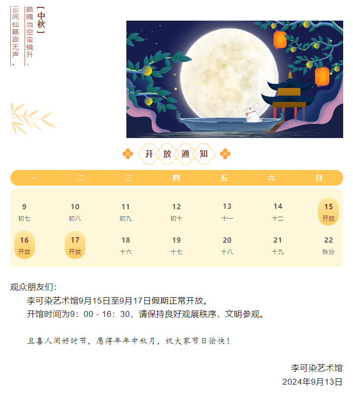 李可染艺术馆2024年中秋假期开放公告