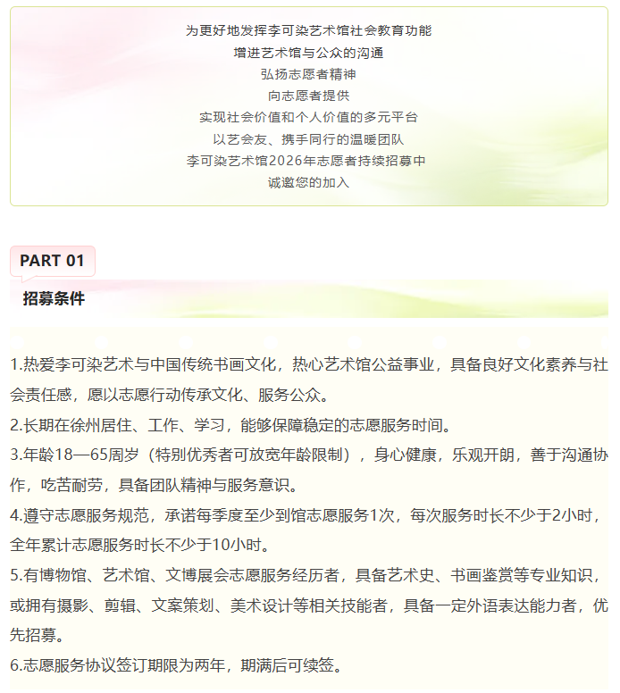艺心相伴 志愿有你 || 李可染艺术馆2026年度文艺志愿者招募公告