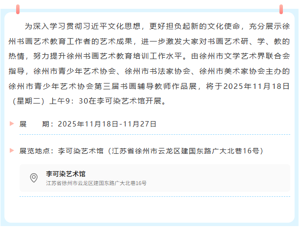 【展讯】徐州市青少年艺术协会第三届书画辅导教师作品展于11月18日开展
